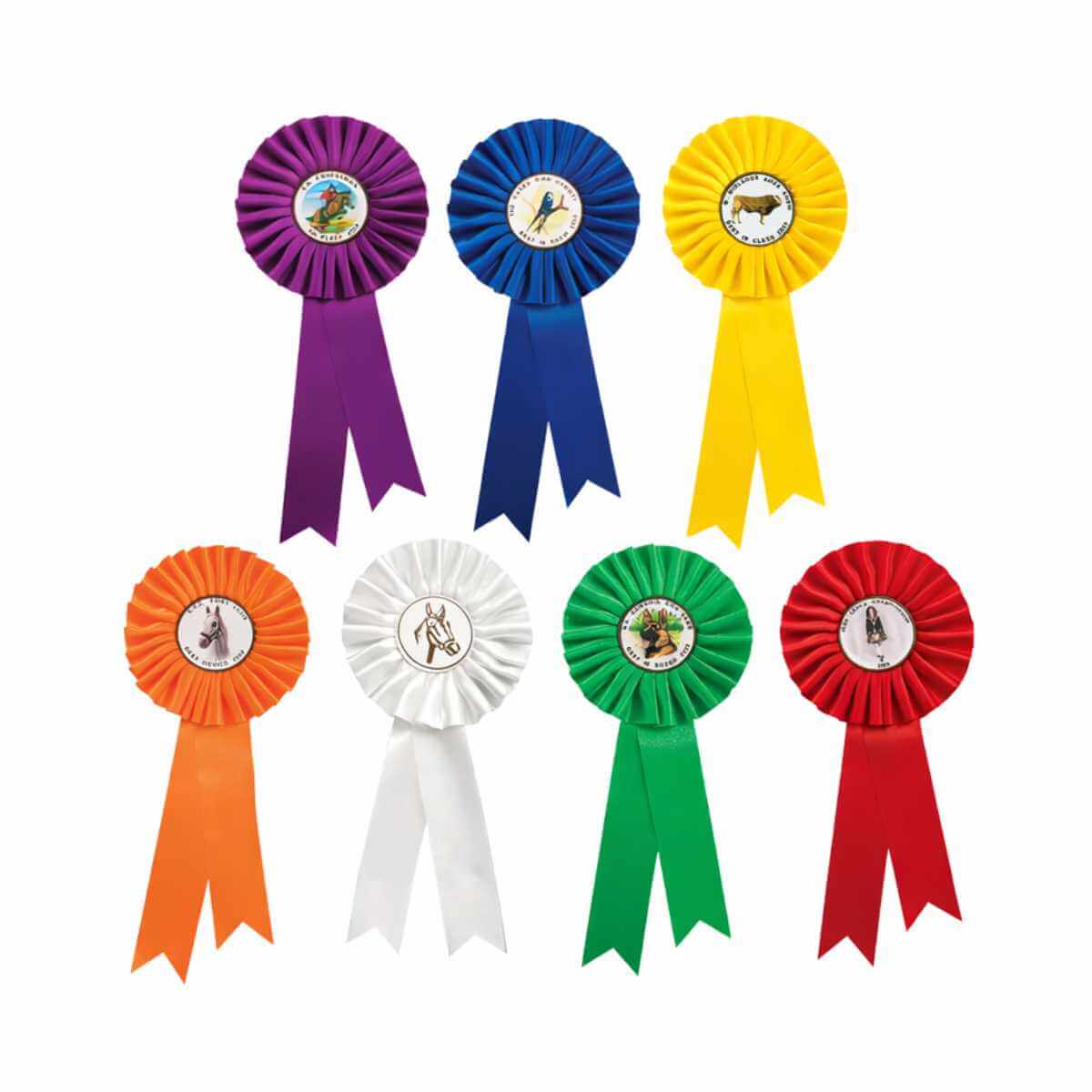 Ideale per premiazioni, eventi sportivi, cerimonie e decorazioni. Realizzata con nastro pieghettato e cartoncino centrale personalizzabile.